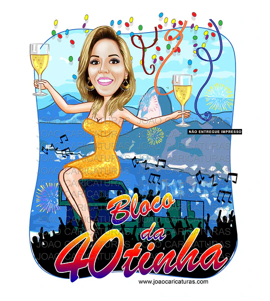 🎉 Transforme sua festa em um momento inesquecível! Encomende uma caricatura digital personalizada para aniversário feminino (30, 40, 50, 60 anos ou...