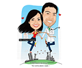 Caricatura de aniversário namorados casal marido mulher médico jaleco jornalista imprensa skol garrafa copo corda pescoço Brasília namorados colorida cidade porto sentados Portugal tomando vinho