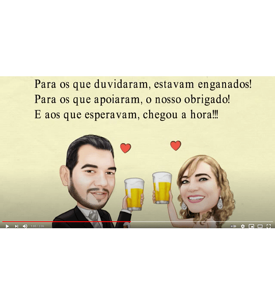 Videozinhos com ou sem caricaturas, aparece no vídeo a mão desenhando as imagens na hora . Para aniversários, festas, casamentos,...