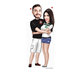 Caricatura digital de casal namorados namoro abraçados aniversário festa presente luar príncipe juntinhos crush moderna realista, caprichada rosto normal natura traços perfeitos vinho Santos